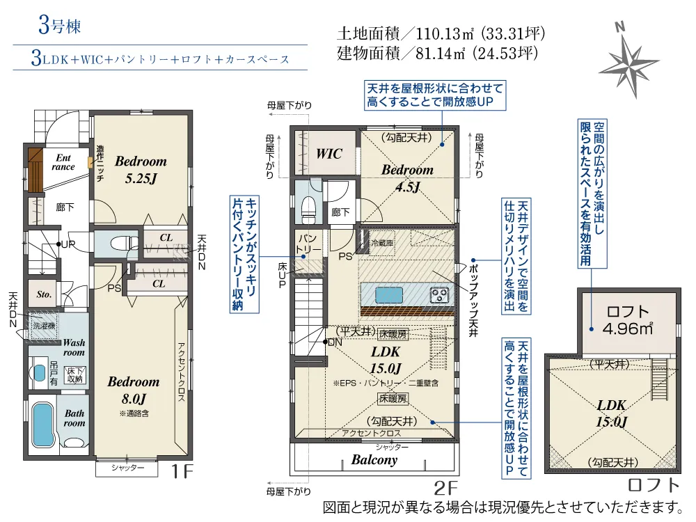 | 土地面積 | 100.84~110.13m² | 建物面積 | 81.14~85.70㎡ |