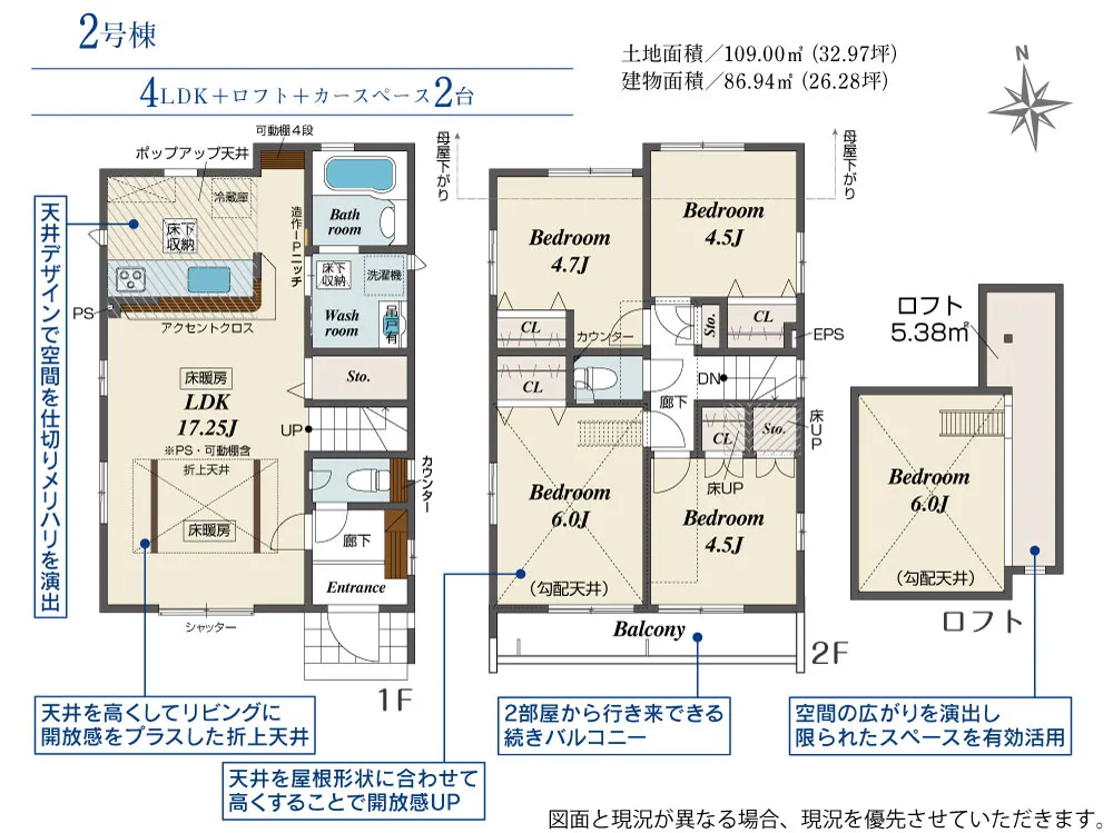 | 土地面積 | 109.00~113.39m² | 建物面積 | 86.94~90.82㎡ |