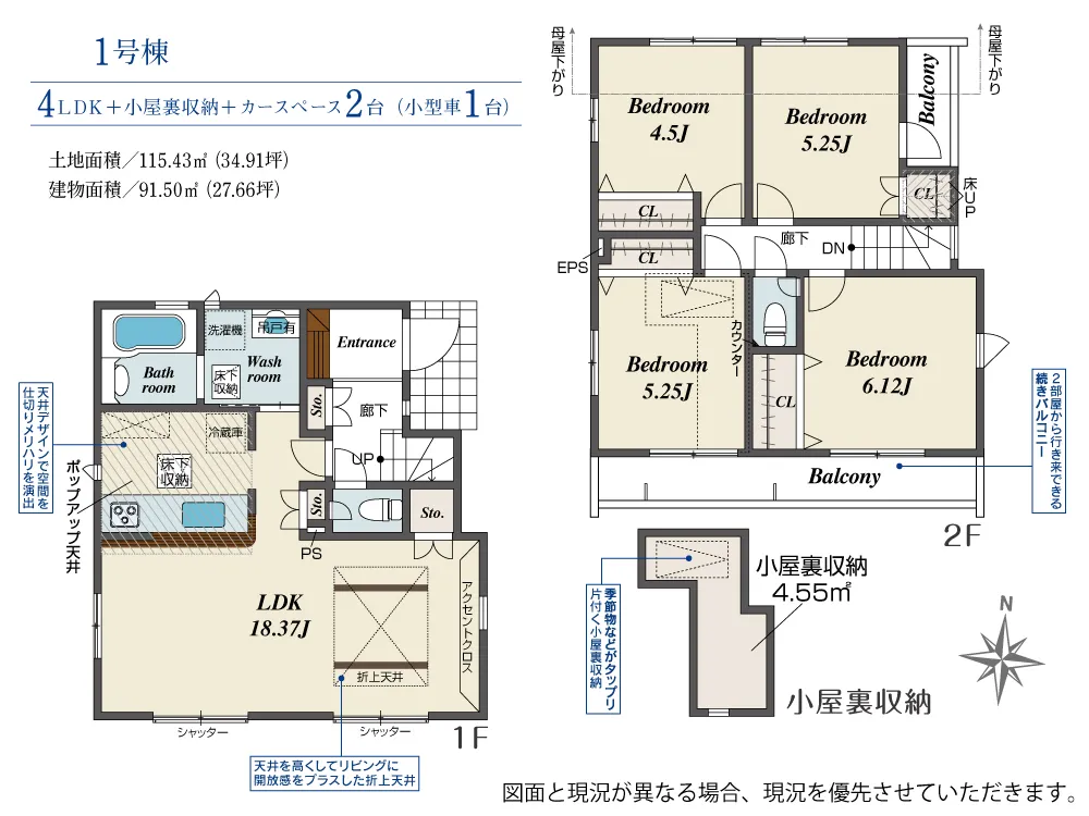 | 土地面積 | 115.43m² | 建物面積 | 91.50㎡ |