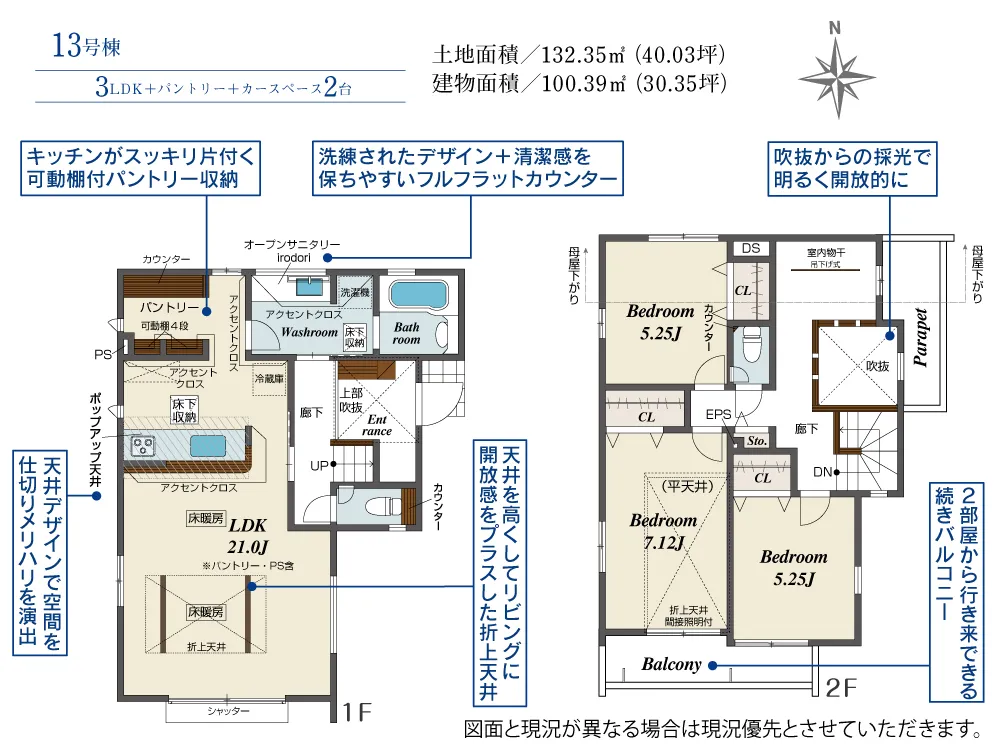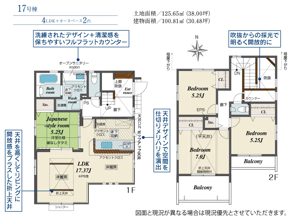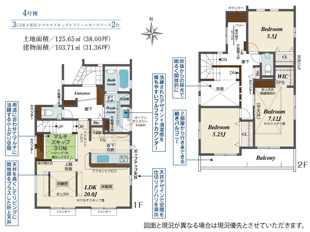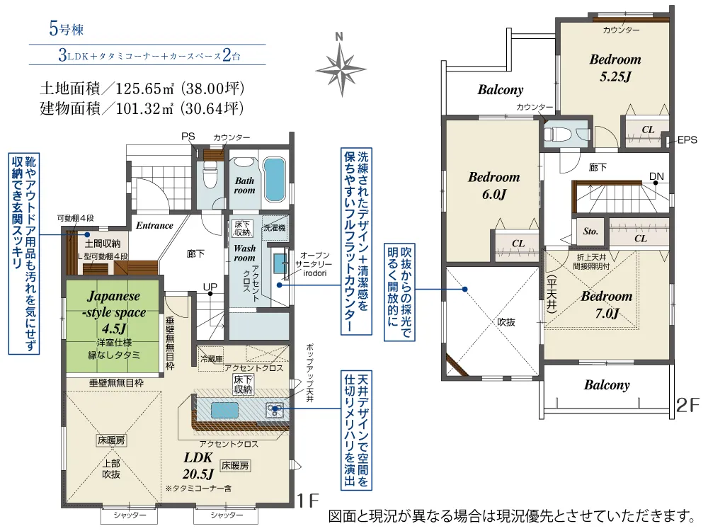 | 土地面積 | 125.65~132.35m² | 建物面積 | 99.33~103.71㎡ |