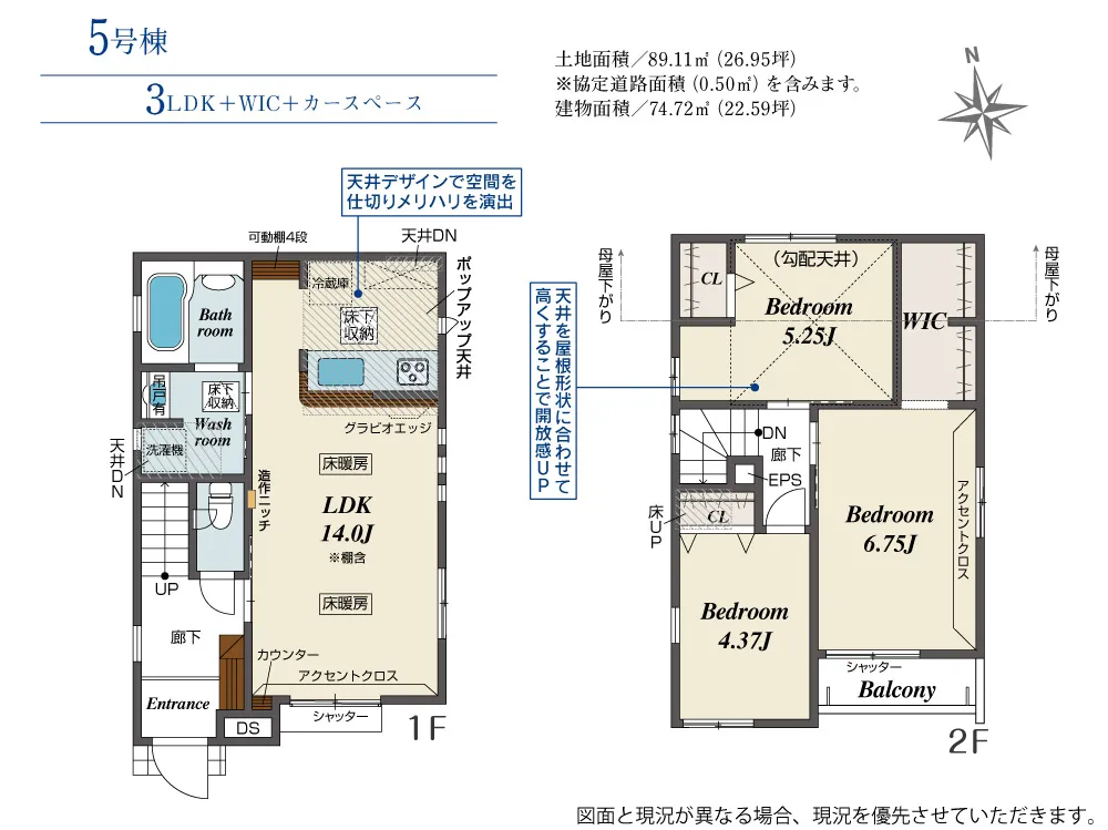 | 土地面積 | 88.50~89.11m² | 建物面積 | 74.72~89.11㎡ |