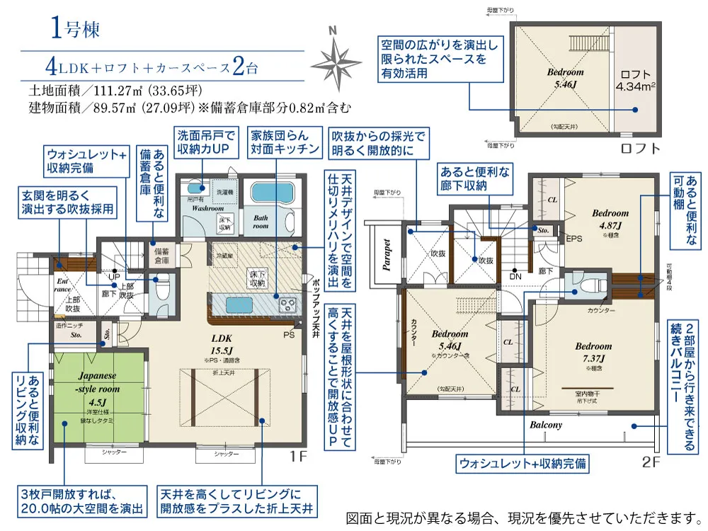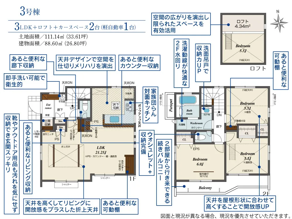 | 土地面積 | 110.89~111.27m² | 建物面積 | 87.76~89.57㎡ |