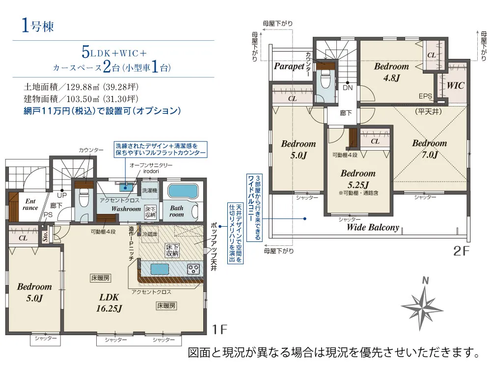 | 土地面積 | 129.88m² | 建物面積 | 103.50㎡ |