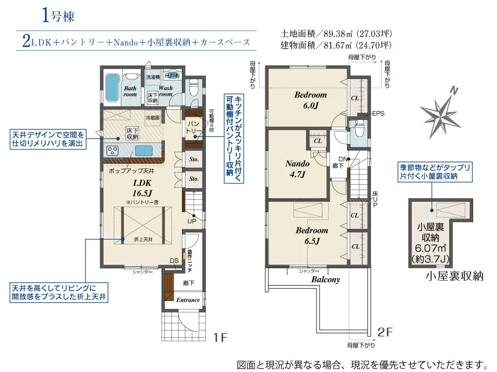 | 土地面積 | 89.38m² | 建物面積 | 81.67㎡ |