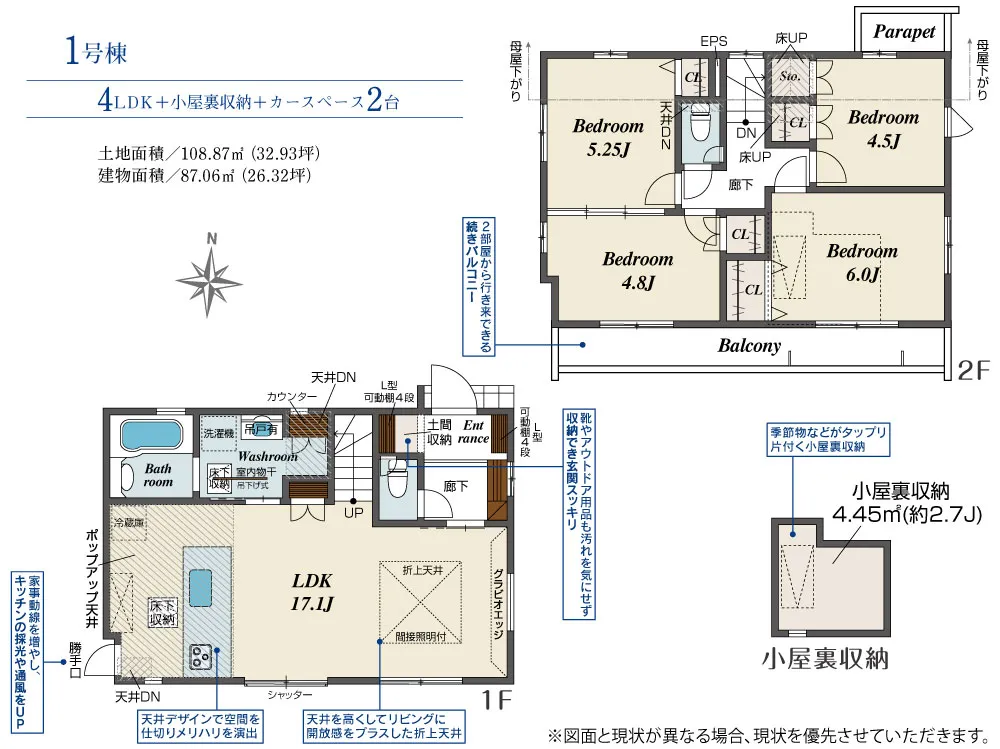 | 土地面積 | 108.87m² | 建物面積 | 87.06㎡ |
