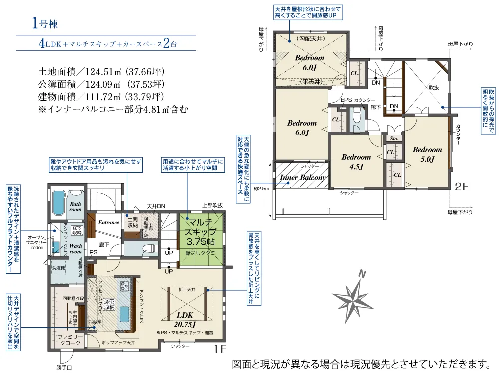 | 土地面積 | 124.51m² | 建物面積 | 111.72㎡ |