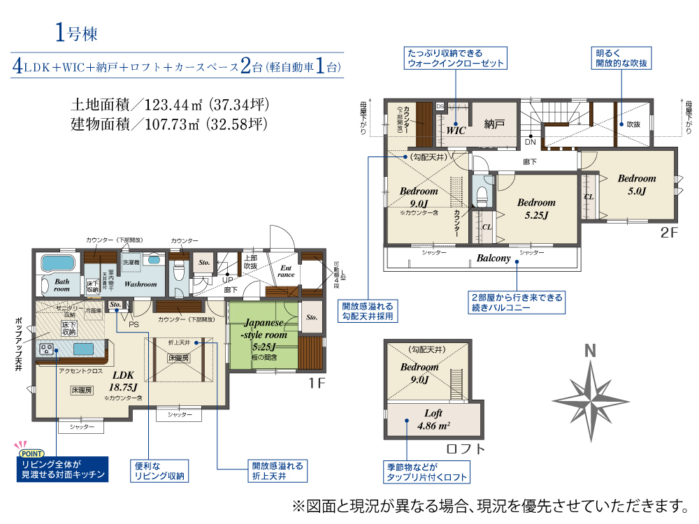 | 土地面積 | 123.44m² | 建物面積 | 107.73m² |