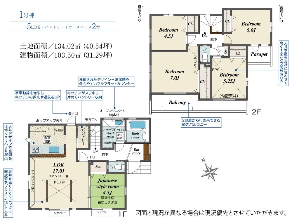 | 土地面積 | 134.02m² | 建物面積 | 103.50㎡ |