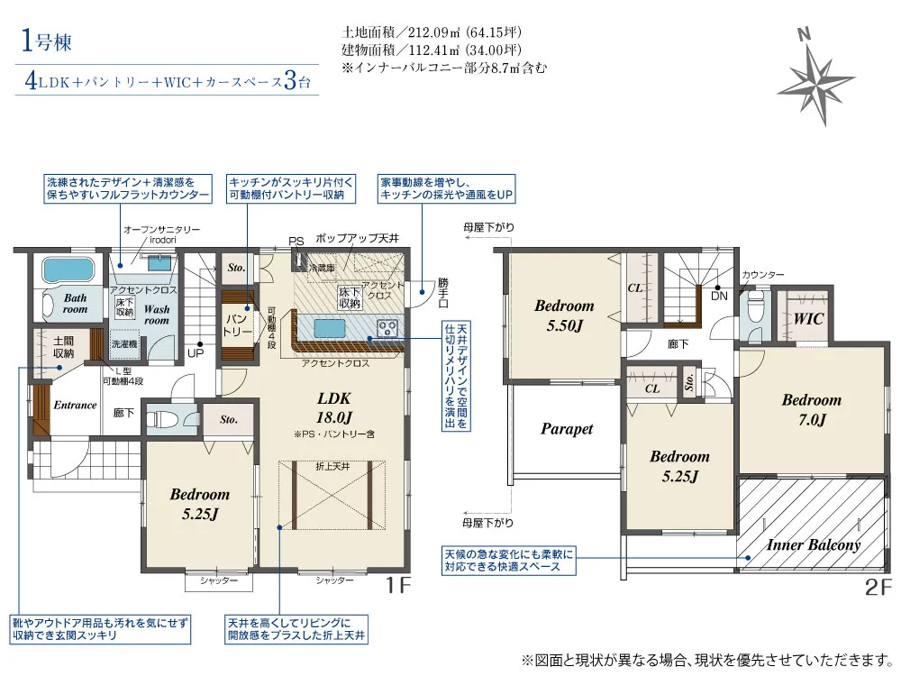 | 土地面積 | 209.39~212.09m² | 建物面積 | 112.20~113.65㎡ |