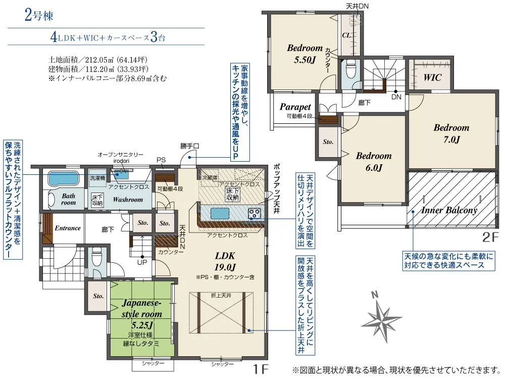 - 建物面積にインナーバルコニー部分8.69m2含む