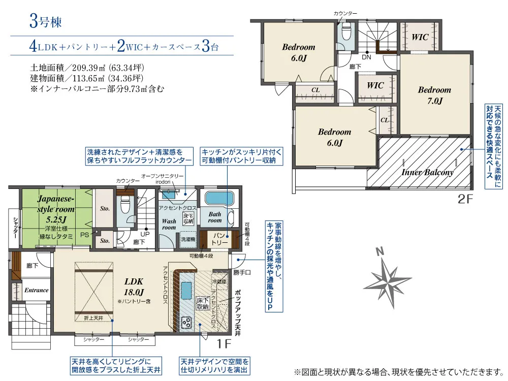 - 建物面積にインナーバルコニー部分9.73m2含む