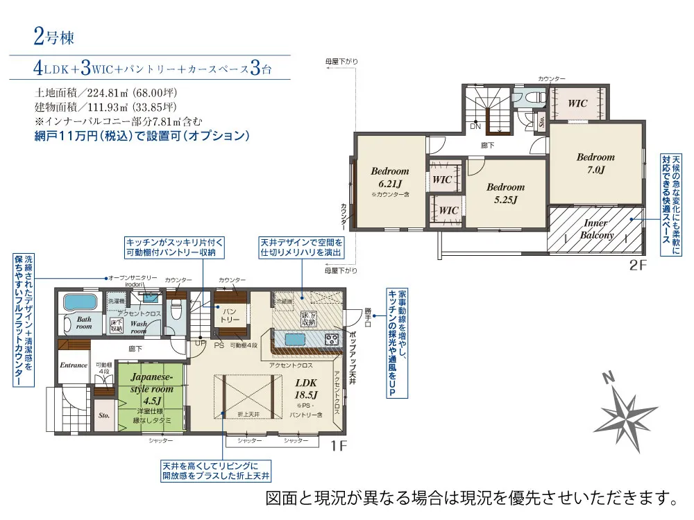 | 土地面積 | 224.81~228.89m² | 建物面積 | 110.13~113.65㎡ |