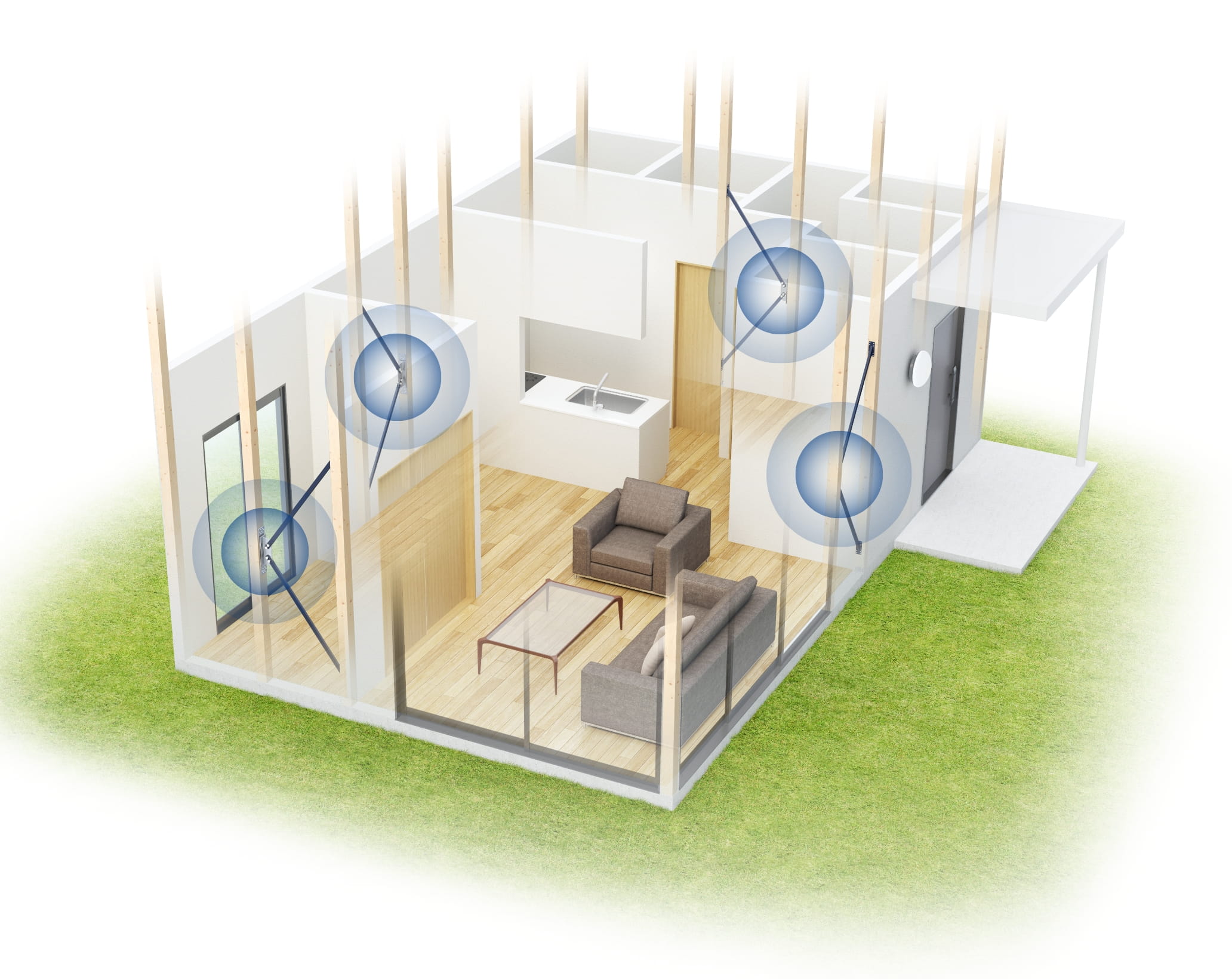 こちらだけでも十分と言える性能ではありますが、巨大地震への備えとして、そして戸建住宅の制震技術普及のため、東栄住宅は住友ゴム工業株式会社と株式会社カナイの3社で制震ダンパーを共同開発しました。